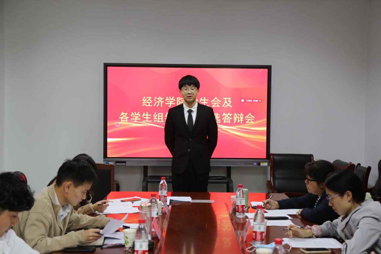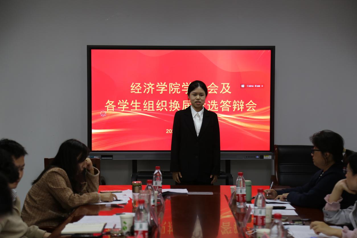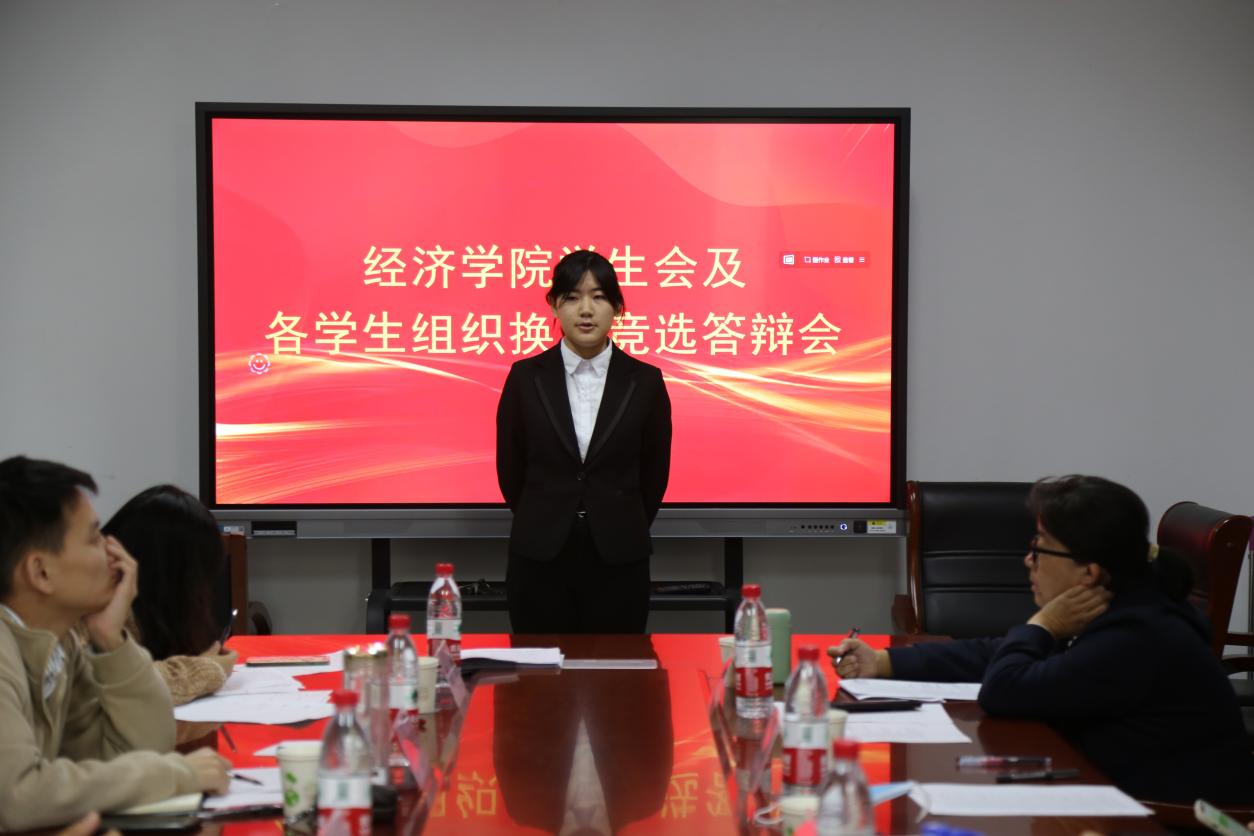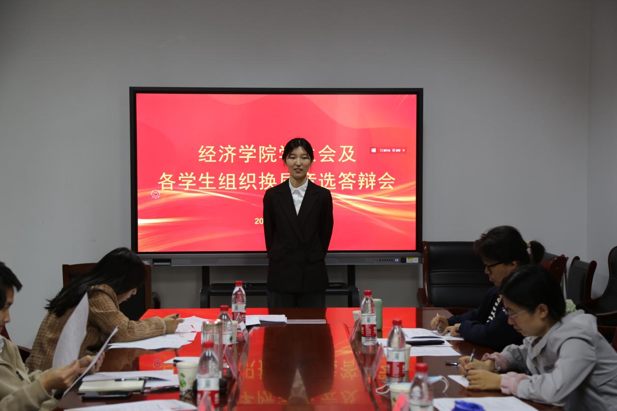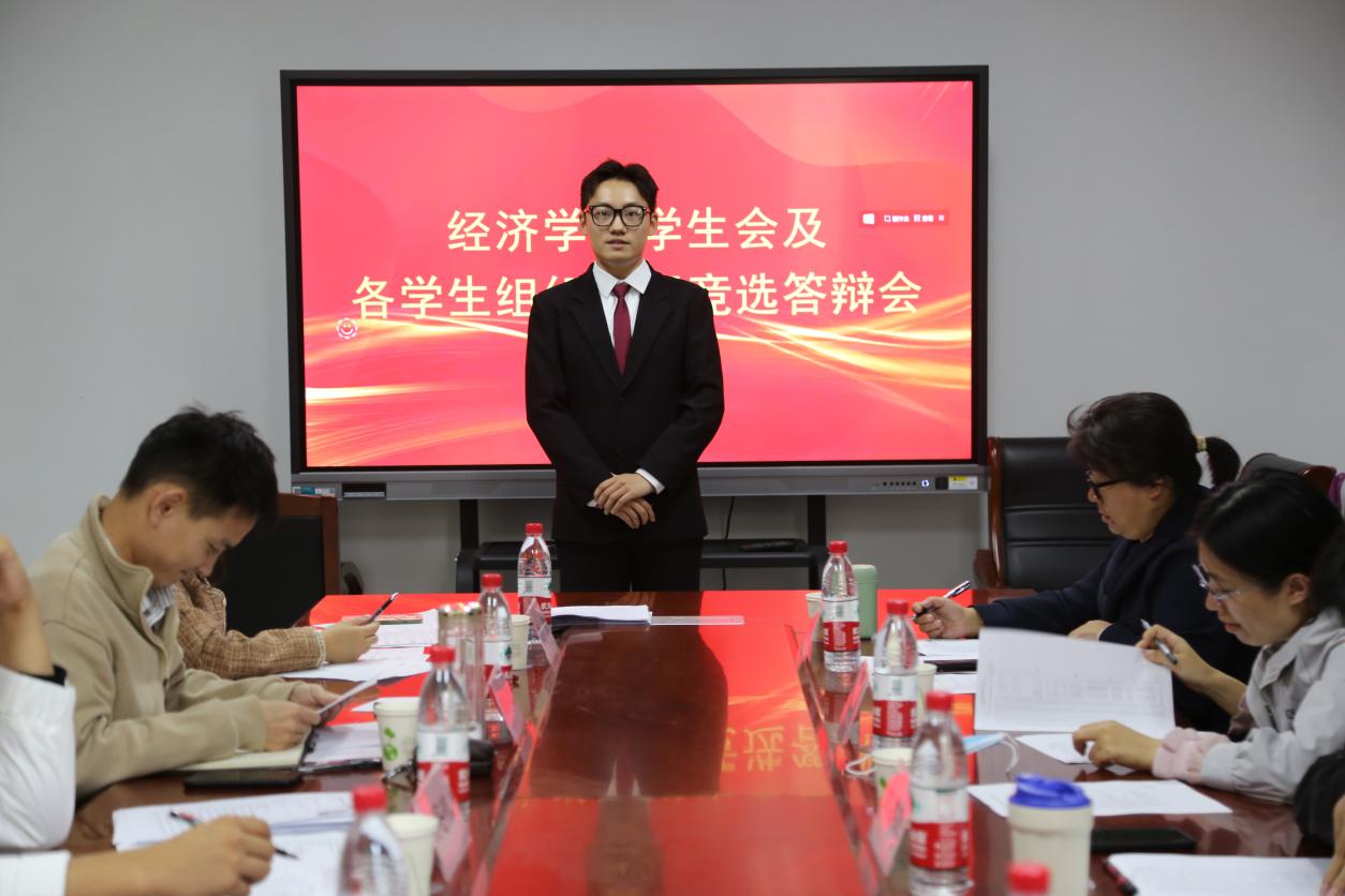 (通讯员:孙婷潇 张艺佳 公天琦 李亦菲)为加强经济学院学生会及学生组织团队建设,引领青年学子成长成才,充分发挥学生的主人翁意识和骨干作用,10月19日下午,经济学院于圣井校区七号教学楼召开学生会及各学生组织换届竞选答辩会。经济学院学工办主任裴斐,院团委书记付雯,辅导员秦小晴、谭春光以及第十一届学生会主席团成员出席答辩会并担任评委,2021级、2022级共120名候选人参加答辩。