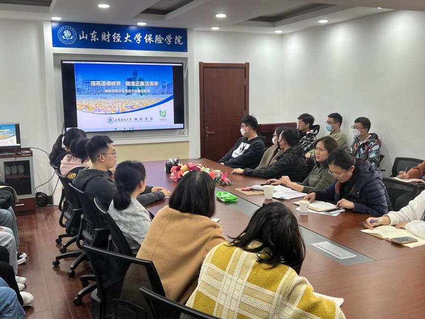 为扎实推进学院廉洁文化建设,增强青年学生党员的廉洁意识。3月23日下午,保险学院“青廉课堂”主题廉洁党课在舜耕校区学院会议室举行,学院党委书记张娟为学生党员干部、新入党青年学生以及应届毕业生代表主讲“青廉课堂”。