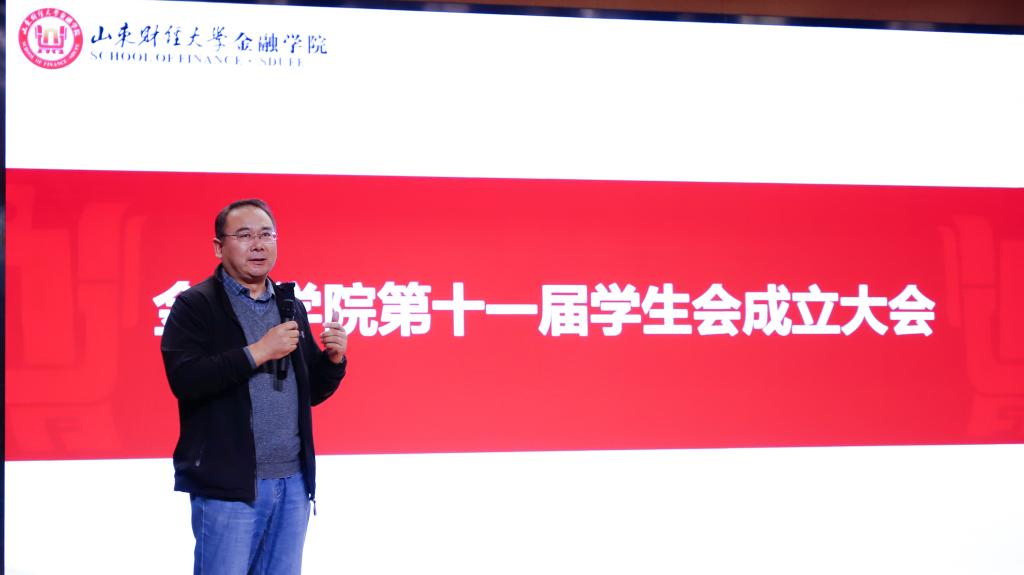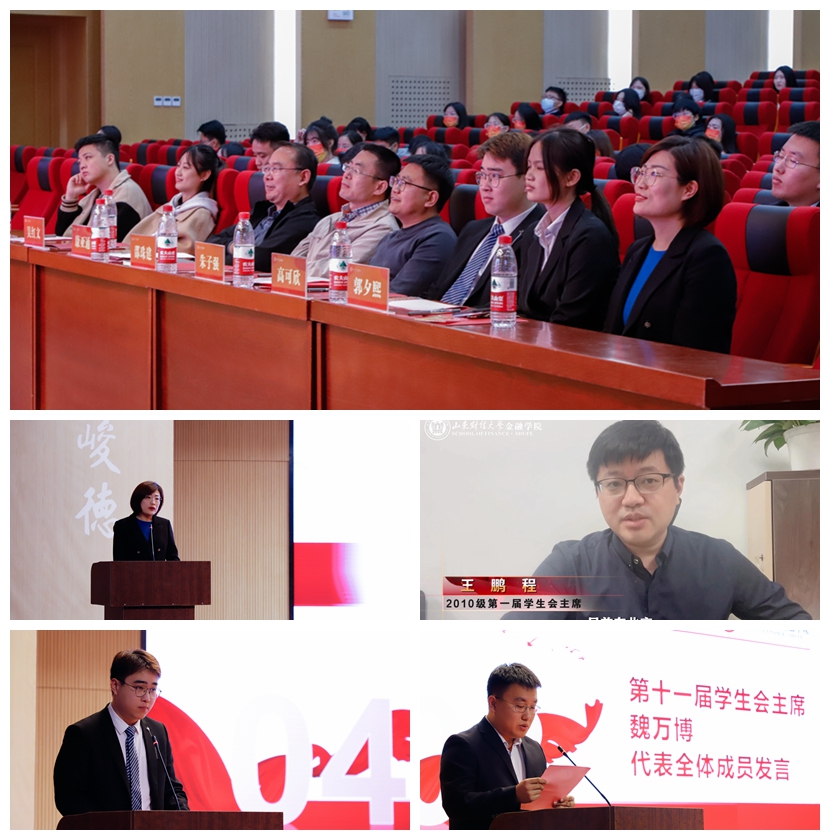 成立大会在庄严的国歌声中拉开帷幕。金融学院历届学生会主席通过录制的视频向母校和学生会送上了祝福,给予第十一届学生会成员莫大鼓励。