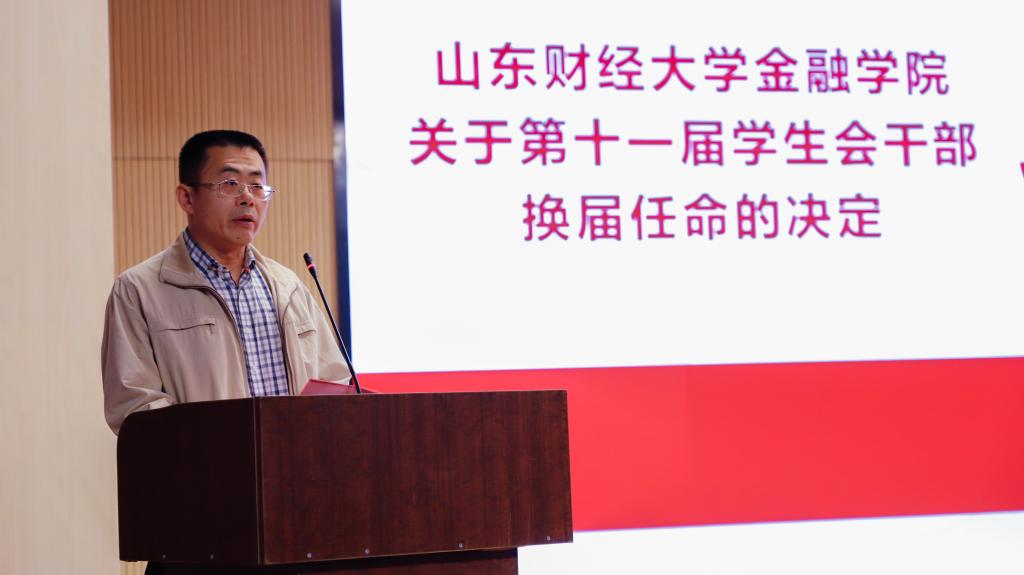 朱子强同学代表第十届学生会作工作报告,他总结了学生会一年以来的工作,希望新一届学生会能够迎难而上,砥砺前行,开创新的美好的未来。第十一届学生会主席魏万博代表新一届学生会主席团发言,他分别从打造学院品牌文化、完善学生会运行制度、加强学生干部作风建设、优化组织结构四个方面做出了新一届学生会的构想和承诺,表示将努力把金融学院学生会建设成为党团组织信赖、学生满意的优秀学生组织。