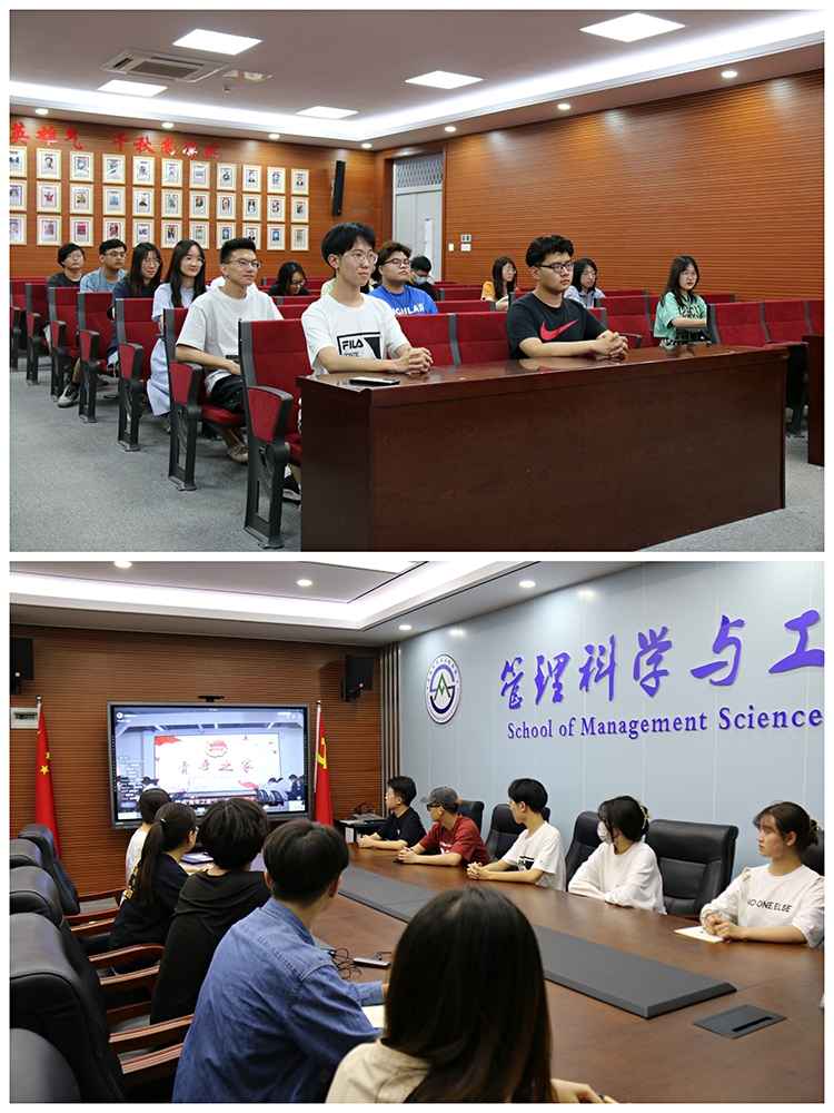 为引导青年团员深入学习贯彻习近平总书记庆祝中国共产主义青年团成立100周年大会重要讲话精神,切实吃透精神实质,把握核心要义,共同学习感悟习近平总书记重要讲话的重大意义和深刻内涵,5月30日晚上7:30,管理科学与工程学院组织学生组织主要学生干部于线下观看共青团中央以“青春心向党,百年再启航”为主题的主题云团课,其他同学通过网络融媒体形式同步观看。