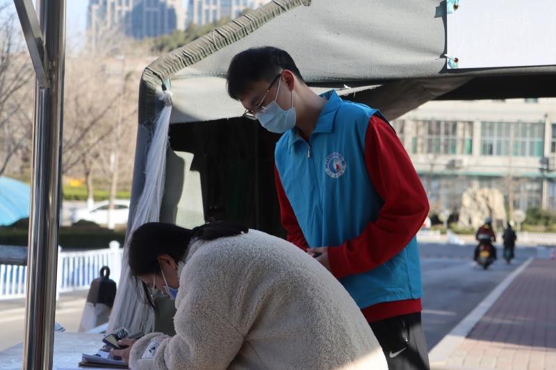 在校门口进行疫情防控检查的志愿者们,统一佩戴口罩,按照学校疫情防控要求,听从学校保卫科老师安排,严谨认真,协助学校保安人员进行进出校人员的健康码、行程卡的查验工作,极大减轻了保安人员的工作负担,使进出校门检测工作更加井然有序,更大程度上确保了校园师生防疫安全。