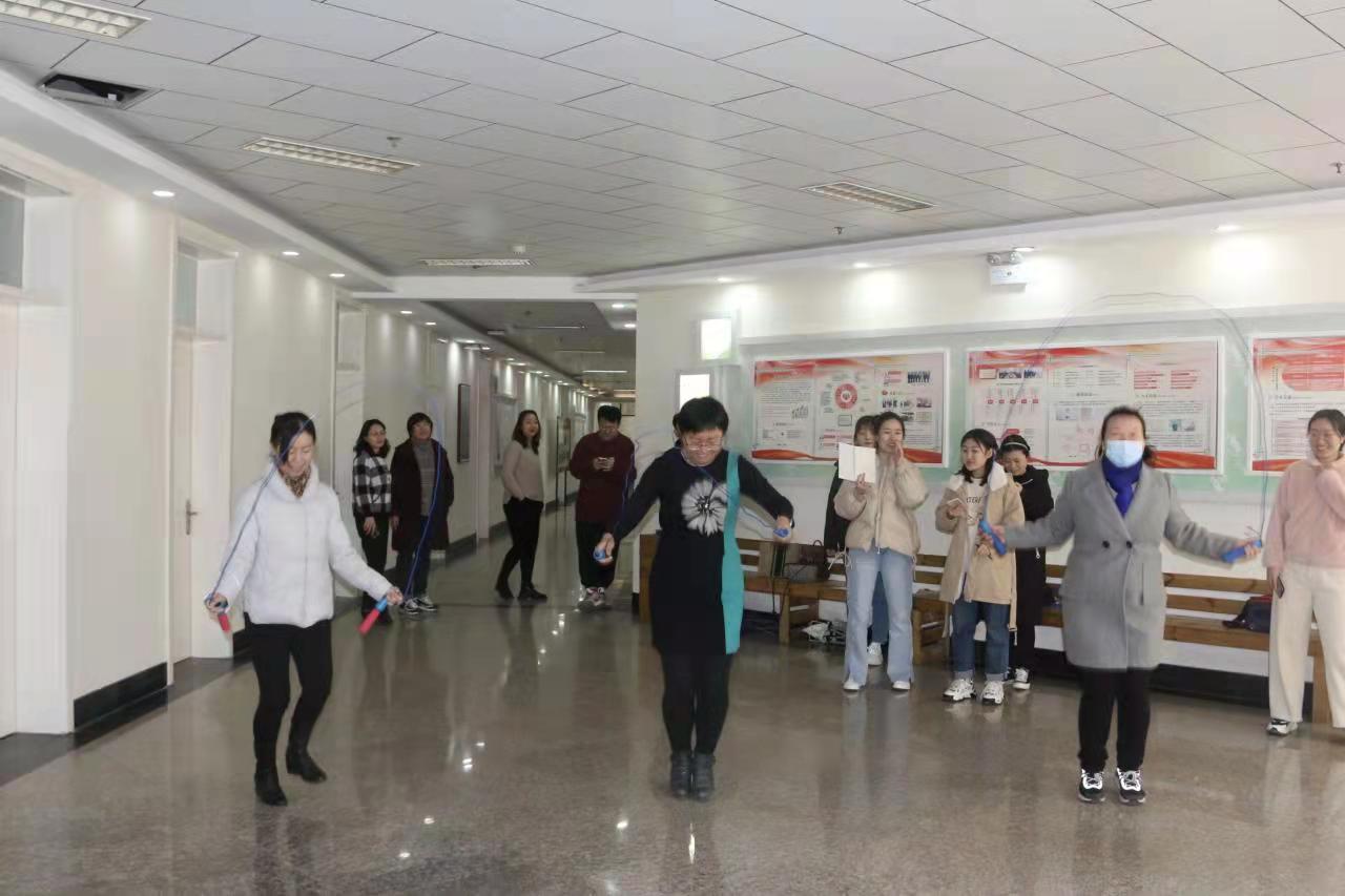 为认真贯彻全民健身国家战略,丰富教职工文化生活,进一步弘扬“巾帼不让须眉”的拼搏精神,在“三八”妇女节到来之际,管理科学与工程学院于3月2、3日下午开展庆“三八”趣味跳绳活动,学院全体女教职工积极参与。