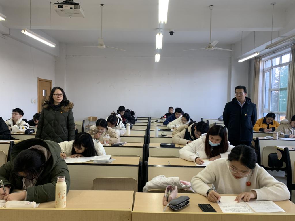 国际经贸学院将党风党纪建设融入日常工作之中,努力推动党风党纪建设与日常工作的相互促进。近日,期末考试期间,国际经贸学院在师生党员中开展了“佩戴党徽进考场”主题党日活动。活动要求,师生党员在进入考场监考、考试过程中,佩戴党徽,发挥模范带头作用:教工党员以身作则,先到一步,提前做好考前相关准备工作,认真履行监考职责;学生党员以身示范,带动同学,积极备考、严格遵守考场纪律。一枚枚闪光的党徽,为考场严肃的氛围又增加了一分庄重。