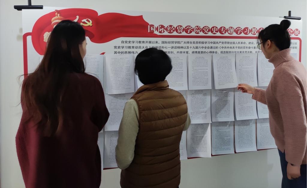 近日,国际经贸学院党委举办党史学习教育心得体会展,在200余名党员撰写的心得体会中精选出部分作品展出,引来不少党员群众驻足观看。