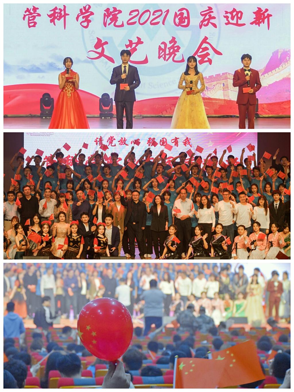 流光溢彩迎新夜,心心连新齐飞扬。9月27日晚7点,管理科学与工程学院“请党放心,强国有我”庆国庆迎新生文艺晚会在圣井校区文体活动中心举行。金秋九月,又是一年迎新季。管科学院在中国共产党建党100周年及新中国成立72周年之际,用一场精心准备的文化饕餮来迎接2021级的莘莘学子,向党致敬,为国献礼。