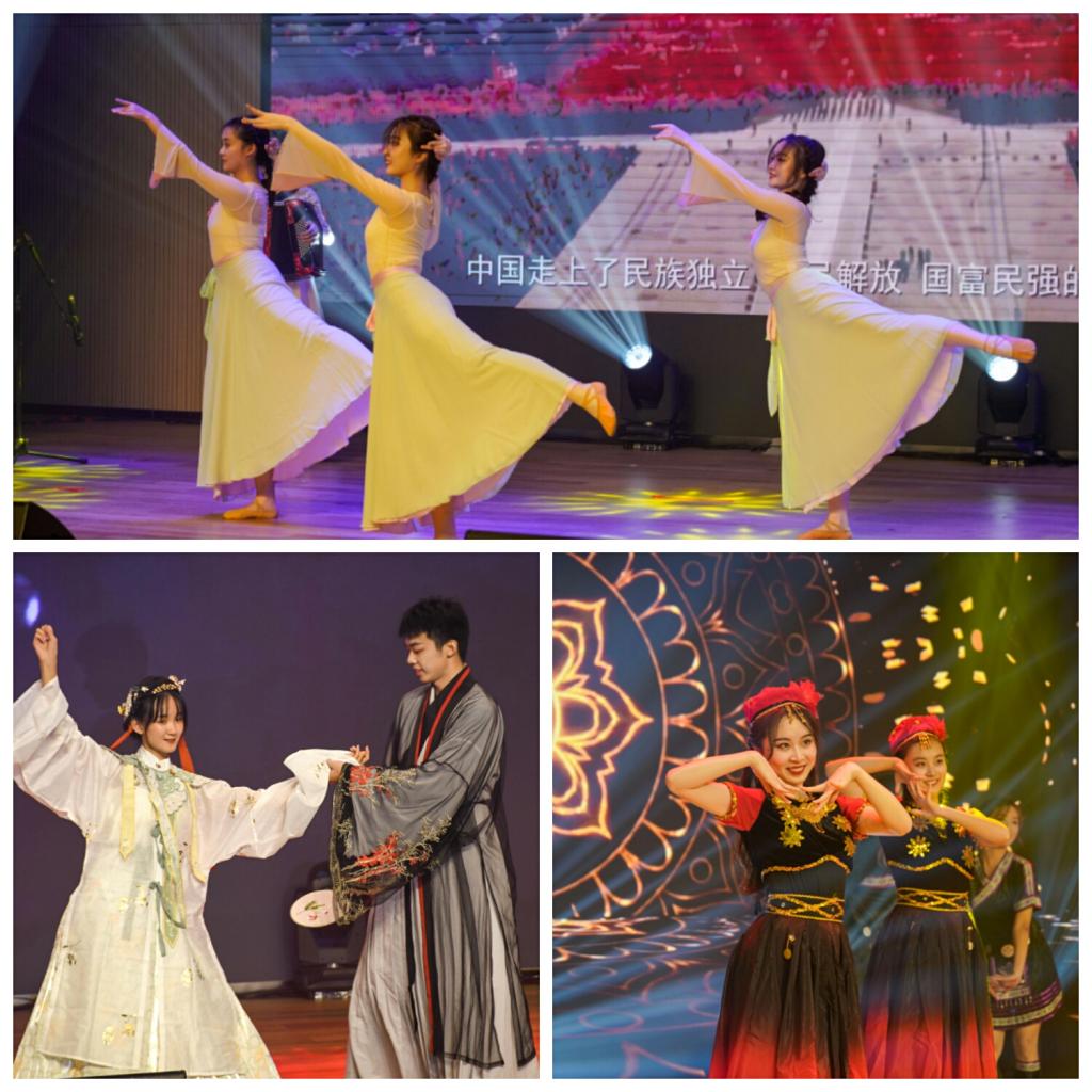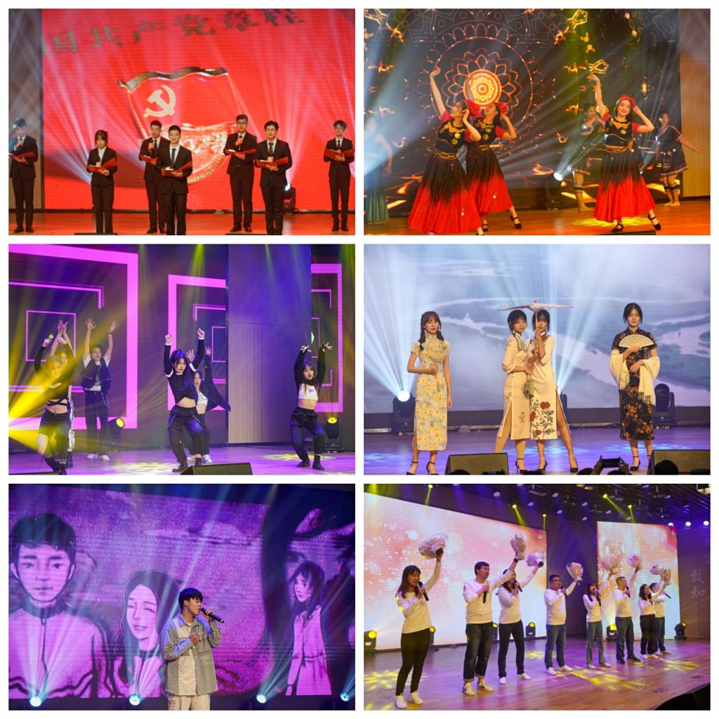 晚会共分为三个篇章。《红日升东方》《吾辈当自强》《为梦想起航》巧妙地将过去、现在和未来三个时间点串联起来,自然的时空纵深感更引观众深思。话剧《秋瑾》、器乐《万疆》和朗诵《七月》、歌曲串烧《不忘初心,向往华夏》用或激扬澎湃或娓娓道来的艺术形式表达了管科学子对党和祖国深沉的挚爱。鼓舞和舞蹈《茉莉花开》《达坂城的姑娘》《舞韵民风》带我们感受了不一样的异域风情和古典韵味。热舞《莲》、歌曲《一直很安静》和模特走秀《华夏衣冠》等节目展现了我院学子朝气蓬勃的精神风貌和别样的艺术气息,给在场的观众带来一场无与伦比的视听盛宴。辅导员老师的歌曲《相亲相爱》与同学们热情互动,将管科大家庭的温暖传递给了每一位同学。