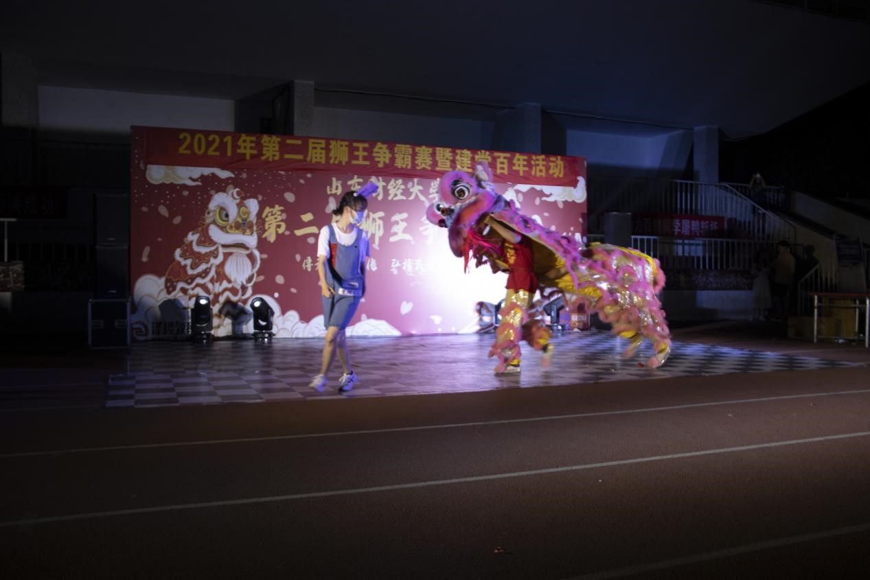 炽灯如炬,火舞成风,群狮竞技显英豪!为庆祝中国共产党成立一百周年,发扬中华民族优秀传统文化,5月22日晚,山东财经大学第二届狮王争霸赛在舜耕校区田径场举行。