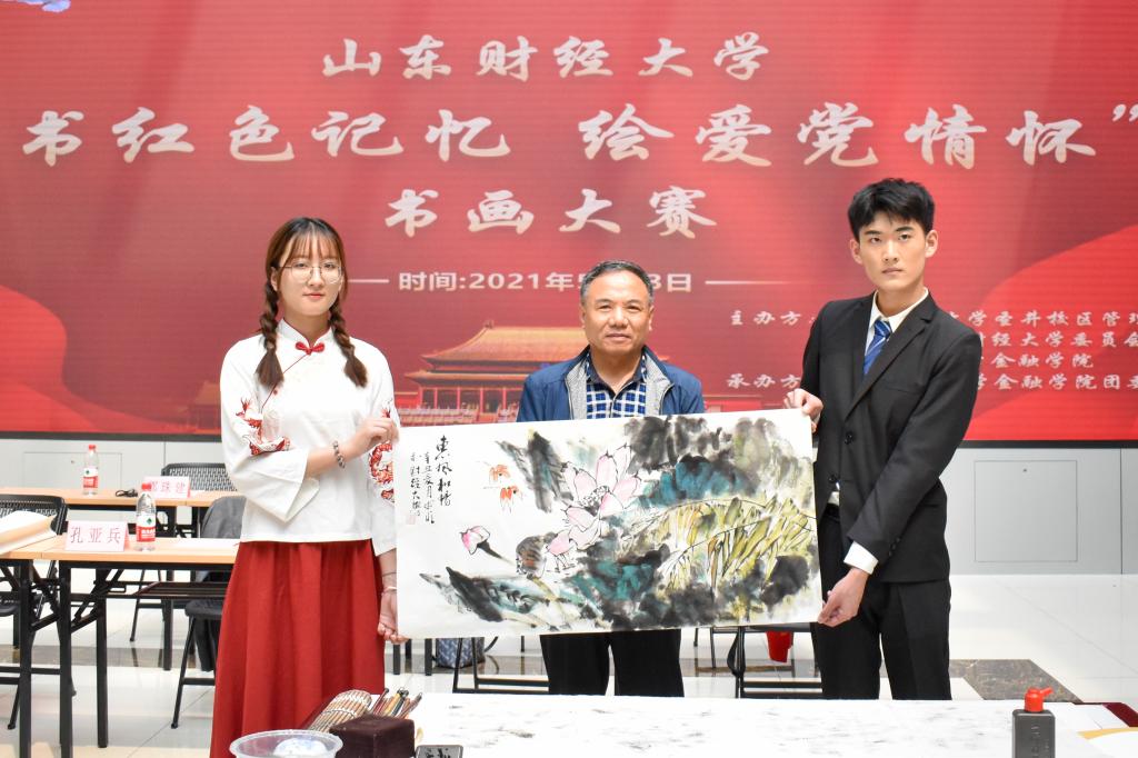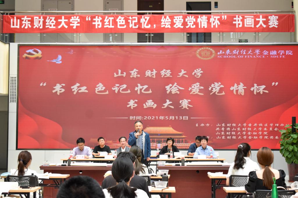 为庆祝中国共产党成立100周年,广泛开展党史学习教育,5月13日下午,金融学院于文化活动中心一楼大厅举办“书红色记忆,绘爱党情怀”书画大赛决赛。特邀山东历山画院秘书长孔亚兵先生、山东画院高级画师王如恒先生担任本次比赛的评委,学校圣井校区管理办公室主任鲁天鑫、金融学院党委副书记范志毅、团委书记陈静、学工办主任孙琦等参加本次活动。