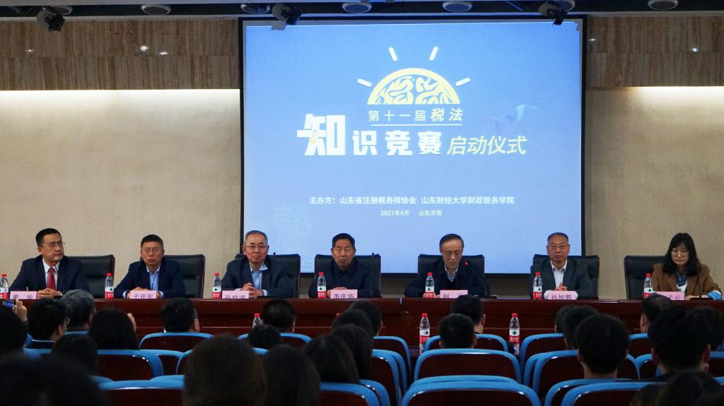 4月27日,由山东省注册税务师协会、山东财经大学财政税务学院联合主办的第十一届税法知识竞赛启动仪式于山东财经大学敏行楼圆满举行。山东省注册税务师协会会长李庆华、常务副会长兼秘书长孙世满、副会长董华,山东省税务局纳税服务处二级调研员于开年,山东财经大学财政税务学院副院长赵宇、2020级税收学(税务师方向)辅导员李子云等人出席本次活动,财政税务学院2019级和2020级部分学生参加了此次启动仪式。仪式由董华主持。