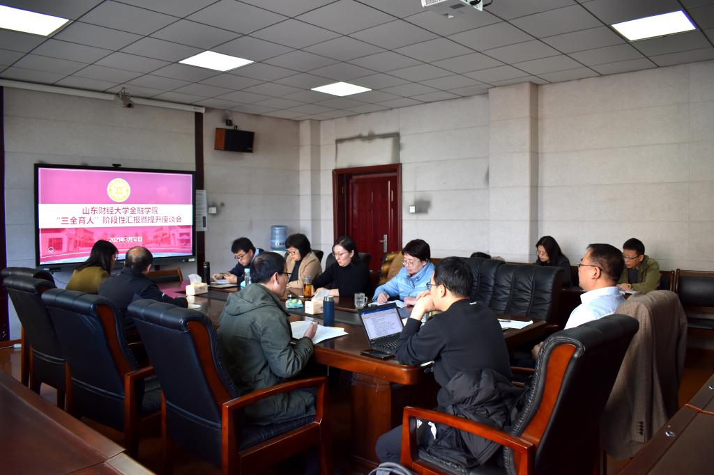 为进一步推进“三全育人”工作经验,全面提升改革示范建设水平,3月12日上午,金融学院于舜耕校区第三会议室组织召开“三全育人”工作阶段性汇报暨提升座谈会。金融学院领导班子成员、院办公室、学工办(团委)参加了会议。会议由党委书记吴红文主持。