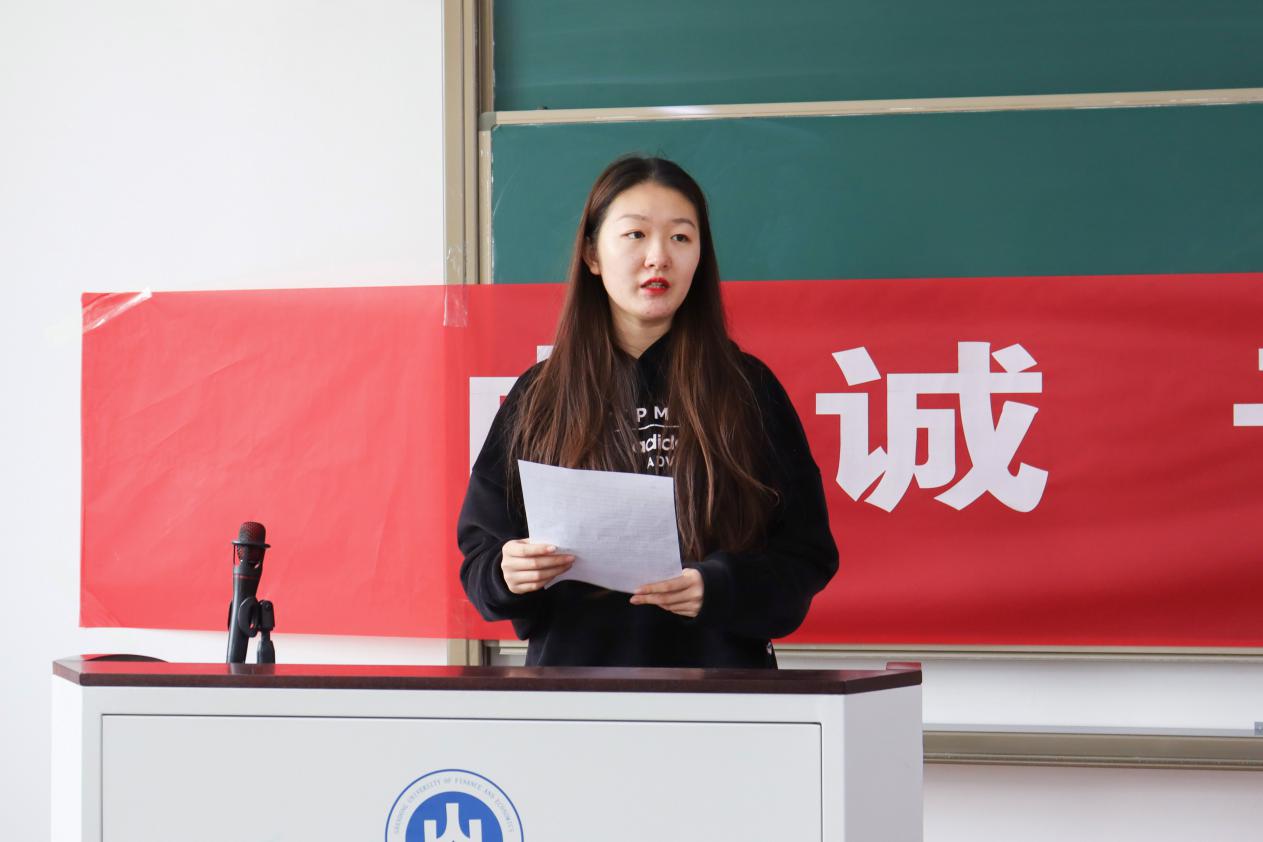 学生代表张艾琪从优良学风的培育过程以及作用两个方面分享了自己的见解。她认为,优良的学风是一种氛围,大学生作为一个知识性团体,培养良好的生活习惯是极其重要的。学风建设是一个渐进、累积的过程,需要精心培育,学生是直接营造者也是最大受益者,来不得半点松懈。她倡议同学们树立优良学风从我做起的意识,德业双修,践行“内诚于心,外信于人“的院训,用实际行动促进学院良好学风的形成。