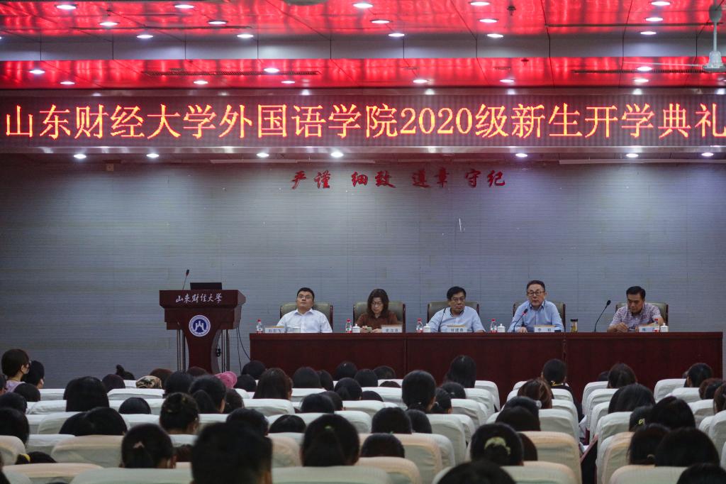 9月29日下午,外国语学院2020级新生开学典礼在舜耕校区举行。学院党委书记甘建青、院长李毅、党委副书记陈海、副院长史汝波、副院长孙崇飞、外国文学研究所所长丁兆国教授、各系主任、学院辅导员和全体2020级本科新生参加开学典礼。开学典礼由党委副书记陈海主持。