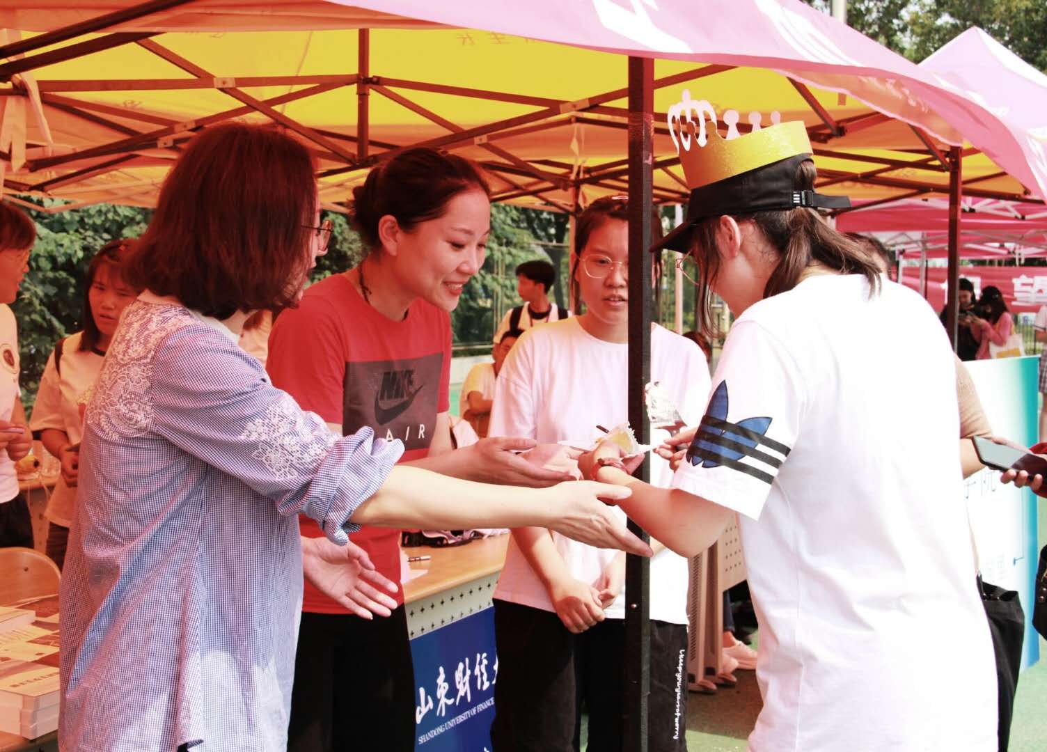 两位新生报到完成后,校报记者对两位新生及其家长进行了采访,同时两位19级同学为他们戴上生日帽。在欢快的“祝你生日快乐”的歌声中,秘书处所维祯同学递上了统计学院送给两位同学的祝福信件,杨雅琳老师亲自为她们送上了生日寄语。伴随着大家热烈的掌声,迎新志愿者端来了生日蛋糕。蛋糕上写着“欢迎来到统院大家庭”九个字,简短的九个字包含着学院老师、学长学姐对她们的热烈欢迎与真挚祝福。