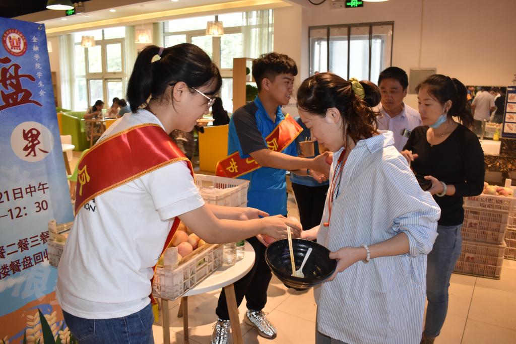 为增强我校学生的节约意识,积极响应学校“厉行节约,反对浪费”倡议,金融学院联合饮食服务中心于9月21日在圣井各餐厅组织“光盘”免费换水果活动。恰逢新生报到日,部分学生及新生家长参加此次活动。