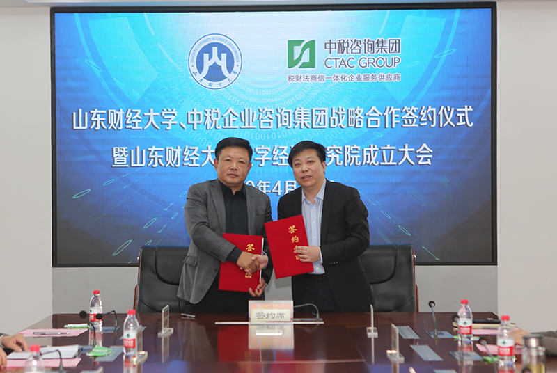4月20日下午,我校与中税企业咨询集团战略合作签约仪式暨山东财经大学数字经济研究院成立大会举行。学校党委书记王邵军出席,会议由副校长张新主持。88级财政专业校友、校友总会副会长、北京校友会常务副会长孙海华,中税企业咨询集团董事长、89级财政专业校友、北京校友会副会长兼秘书长宋宁,88级财政专业校友、中税联华税务师事务所副总秦朝勃,洪泰资本山东合伙人、93级财政专业校友张逸君和相关学院部门主要负责人、相关企业高管参加活动。