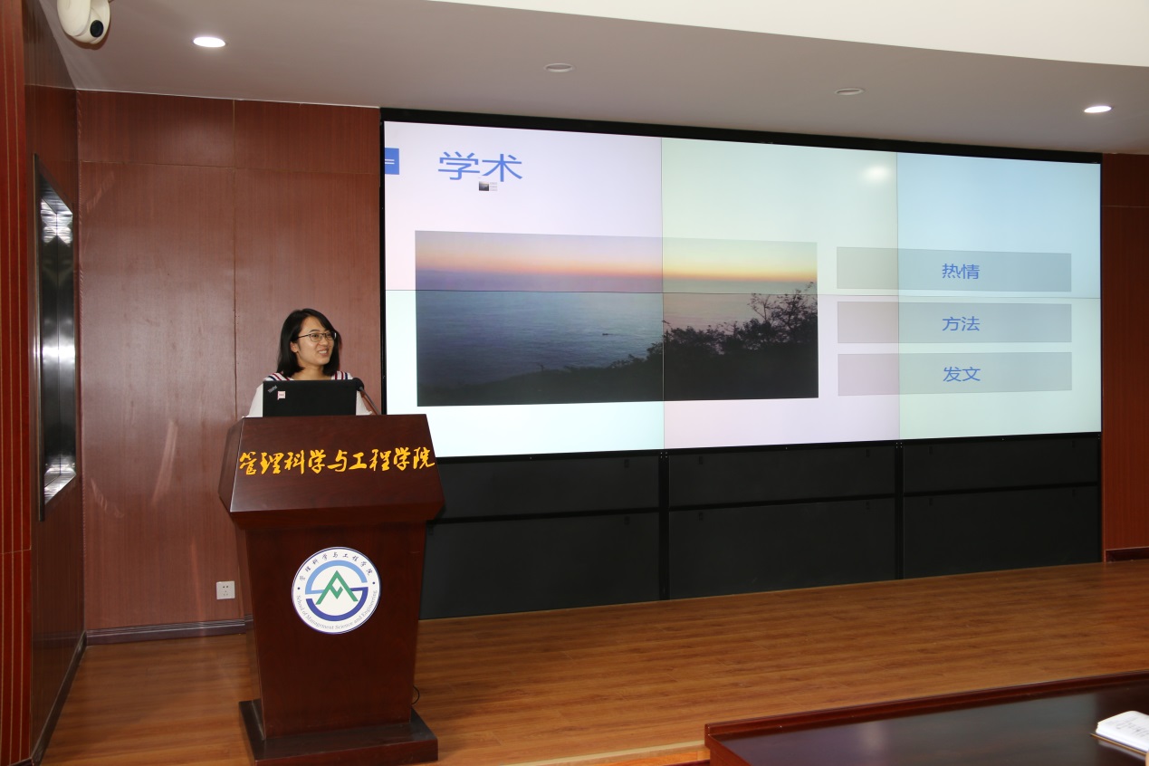 近日,管理科学与工程学院举办2019届优秀毕业生经验交流会,本次交流会由研究生会主席张培主持,2019届优秀博士毕业生滕飞同学和三位优秀硕士毕业生于兆青、代宗利、时守甜同学受邀进行经验分享,教师代表马建华、马艳波和学院党委副书记朱翠珍作为点评嘉宾出席本次交流会,研究生辅导员何丽老师、学院全体研究生以及一年级创新班的部分同学参加了此次交流会。