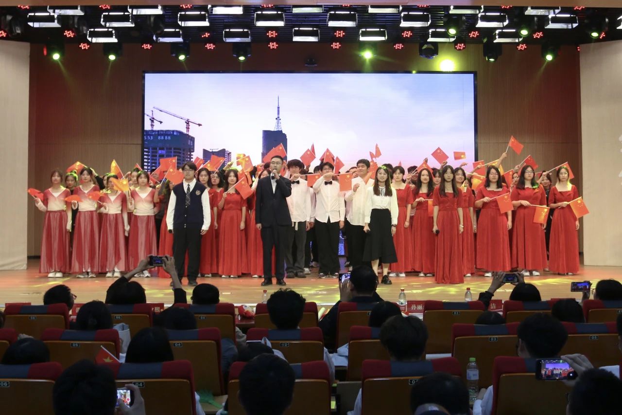 活动最后,由金融学院辅导员王蕴玮与李治坤老师领唱,全场师生深情合唱《我爱你中国》。悠扬的旋律触动心弦,响亮的回音激荡如潮,全场观众更加坚定了为实现祖国繁荣昌盛而努力奋斗的决心。