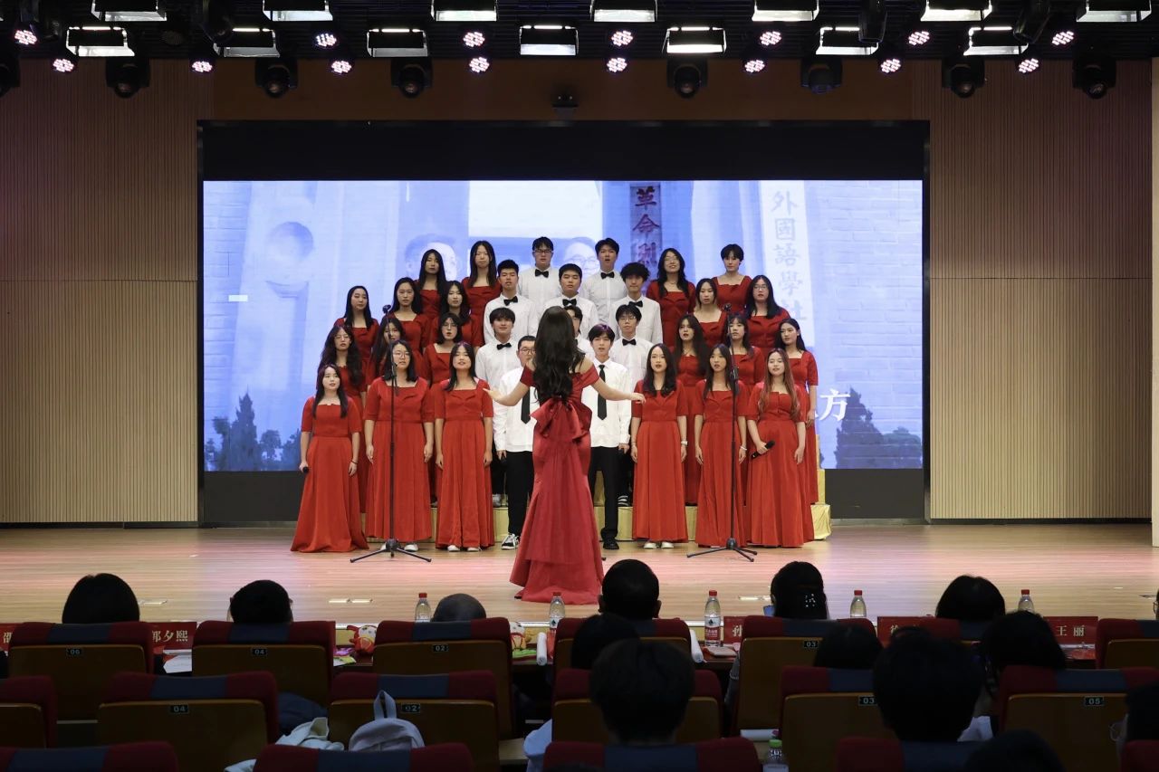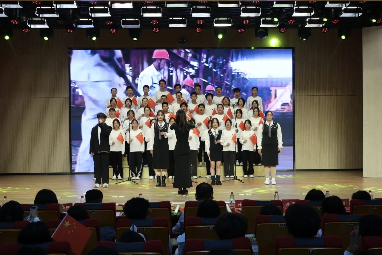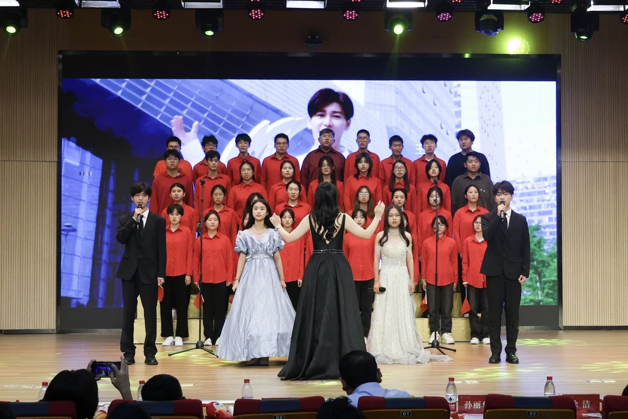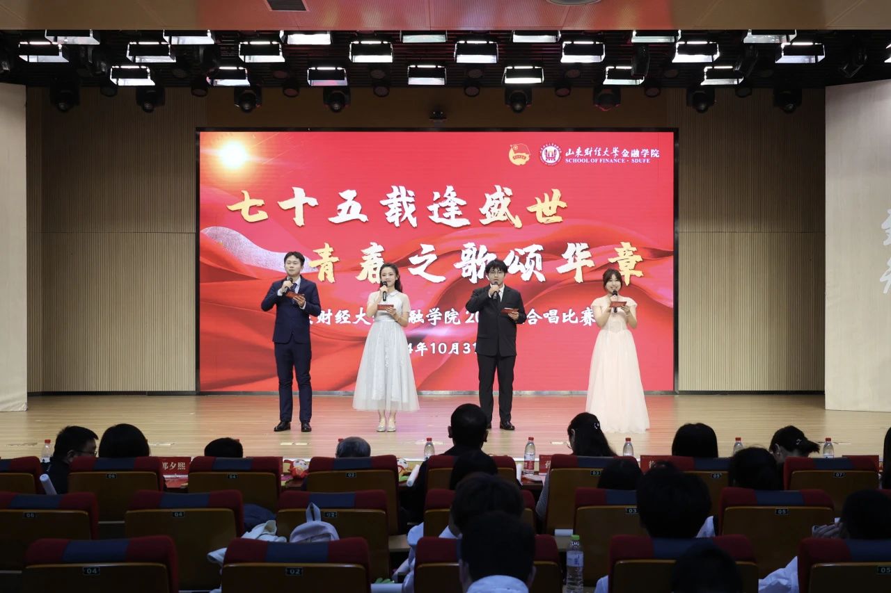 比赛继续进行。金融学1班的同学用歌曲传达着青春热情,字里行间充满了对这片土地深沉的眷恋。声浪重叠,金融学5班的歌声展现出生生不息的民族韧性,传递了“天下大同”美好愿景。