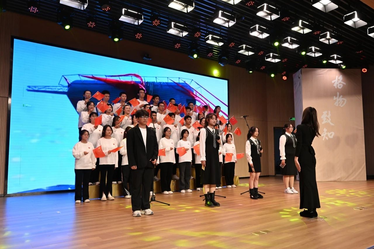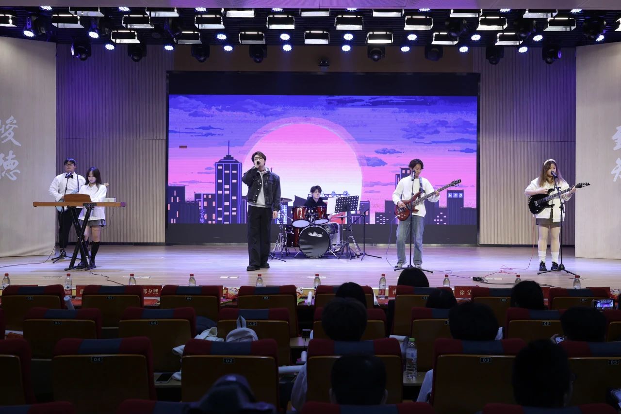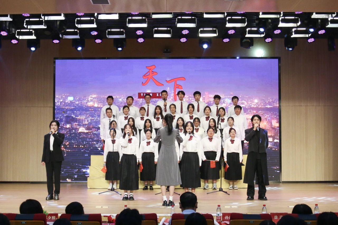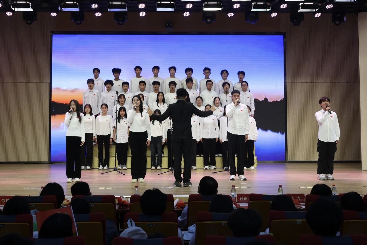 比赛继续进行。金融学1班的同学用歌曲传达着青春热情,字里行间充满了对这片土地深沉的眷恋。声浪重叠,金融学5班的歌声展现出生生不息的民族韧性,传递了“天下大同”美好愿景。