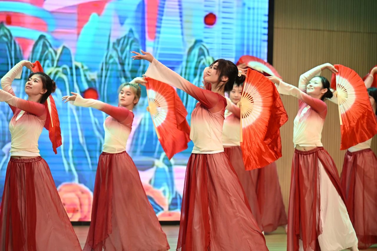 随后,金融学院舞蹈队带来舞蹈《九州同》。优美的舞姿如灵动的画笔,在时光的画卷上续写着华夏的传奇,使现场观众沉浸其中。