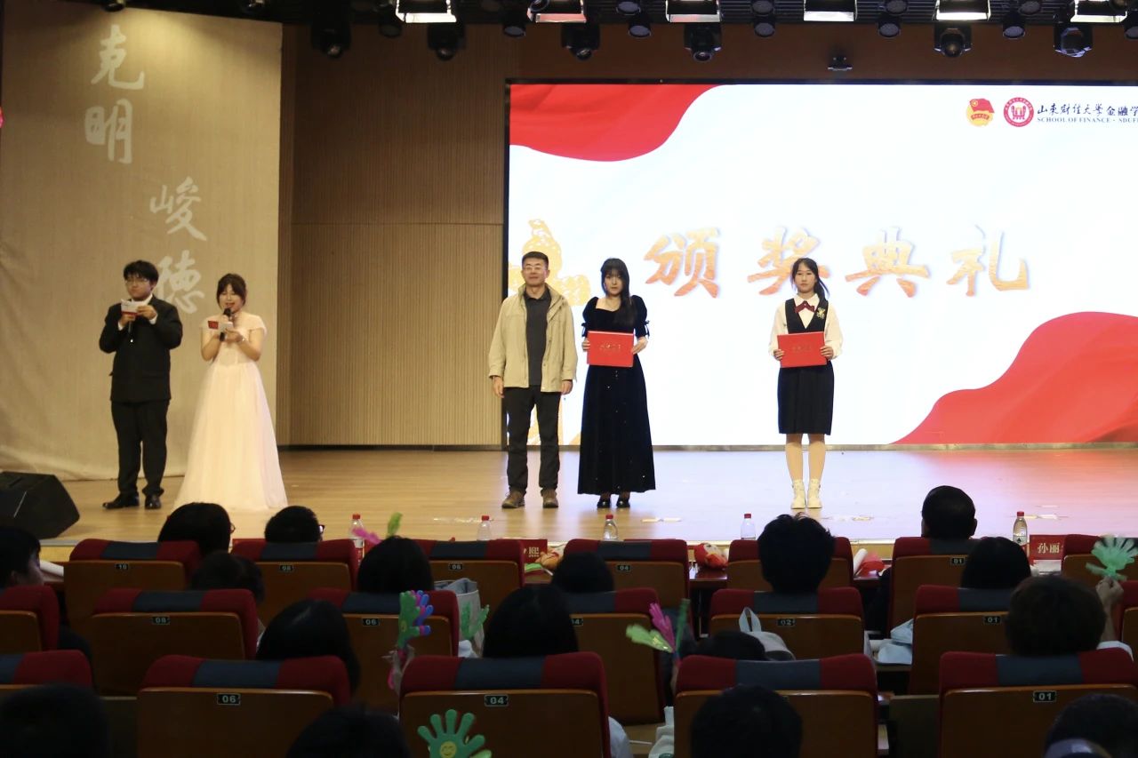 经过精彩的比赛与激烈的角逐,主持人揭晓了比赛结果:金融学3班荣获一等奖;金融学2班、金融工程2班荣获二等奖;投资1班、金融科技2班、金融学4班荣获三等奖;金融工程1班荣获“最佳创意奖”;金融学1班荣获“最佳台风奖”;金融学5班荣获“最佳形象奖”;金融工程3班荣获“精神文明奖”;金融科技1班荣获“最佳组织奖”。另外,由辅导员王丽、邵珠建向全体导航学长学姐颁发“优秀导航奖”。