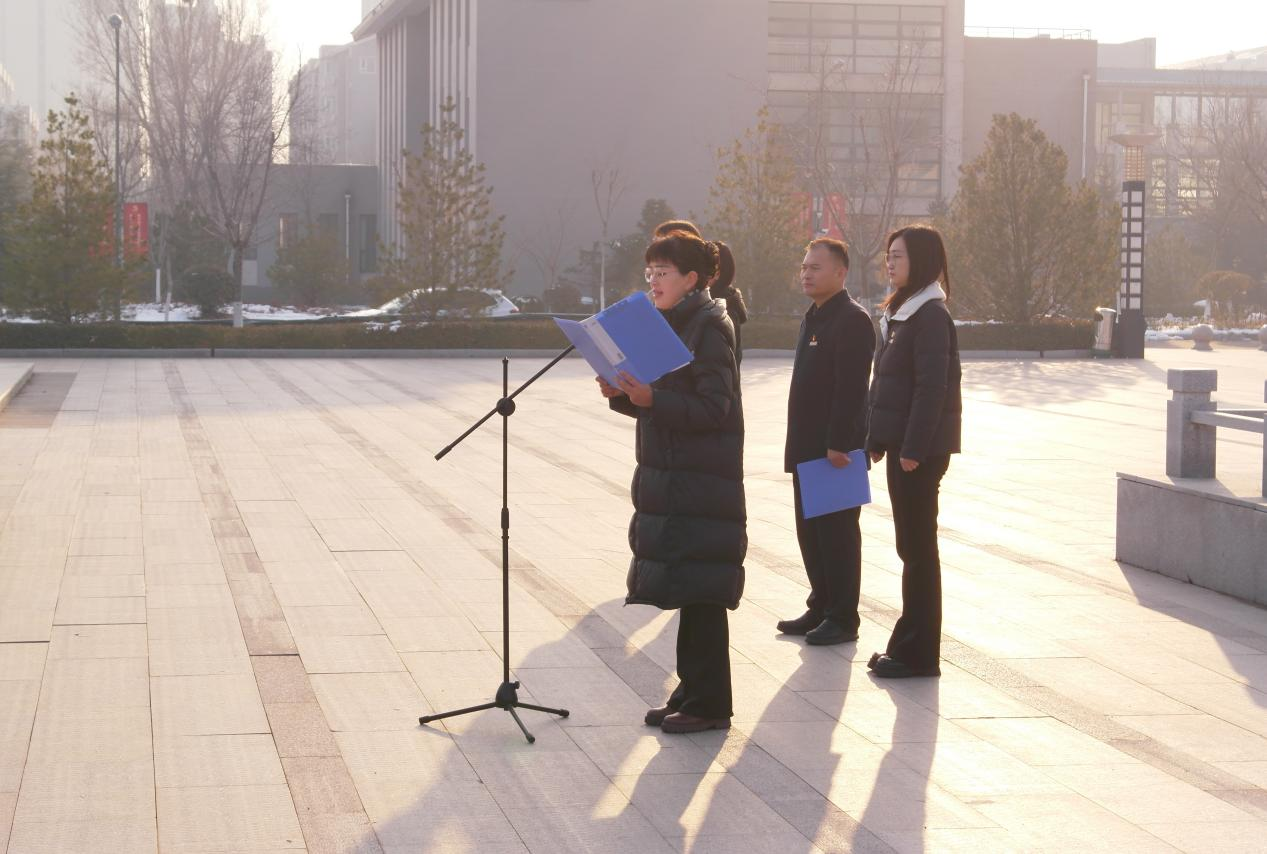 3月5日早7时,由校学生工作部、团委主办,财政税务学院承办的“赓续雷锋精神,闪耀青春担当”升国旗主题教育活动在圣井校区举行。财政税务学院党委副书记滕晖,副院长赵宝廷,辅导员代表,学生党员、预备党员、入党积极分子和2024级新生共同参与。升旗仪式由滕晖主持。
