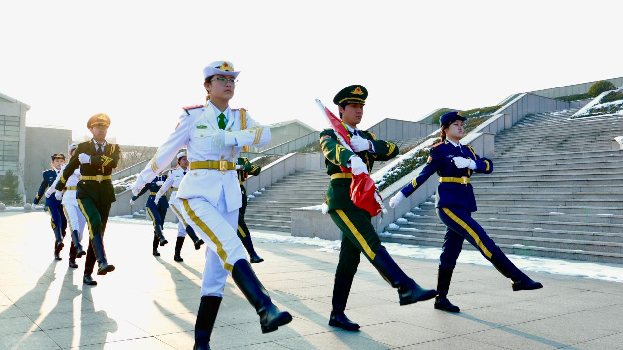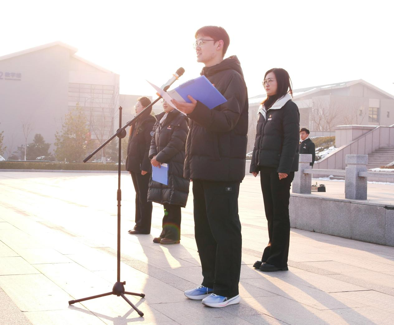 迎着清晨的阳光,国旗护卫队迈着整齐的步伐护送国旗入场。随着国歌奏响,五星红旗在轻风中缓缓升起。全体师生肃立,伴随着旋律齐声高唱国歌,向徐徐升起的旗帜行以崇高的注目礼。