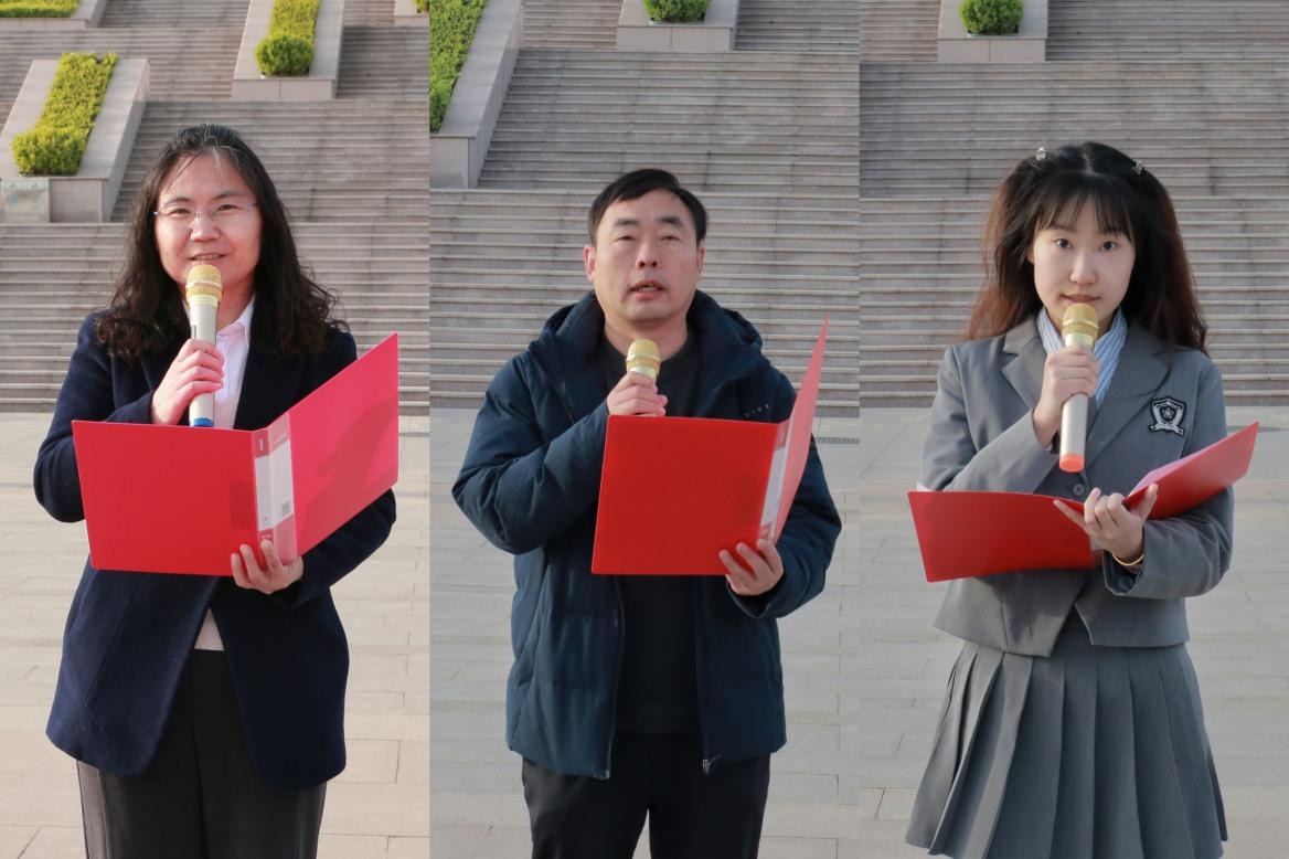 升旗仪式结束后,王培信作为教师代表发言。他结合李大钊、赵一曼等榜样事迹,寄语学生:“当今时代的和平与繁荣,离不开先烈们的伟大牺牲与无私奉献。新时代青年当以真才实学报效祖国。课堂上的专注、实验室里的探索、社会实践中的汗水,都是对先烈精神的传承。”