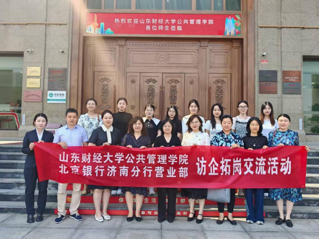 为进一步加强校企合作,拓宽学生就业渠道,搭建合作发展平台,6月12日,公共管理学院院长贾海彦带领劳动与社会保障系师生代表赴北京银行济南分行开展访企拓岗促就业交流活动。北京银行济南分行营业部总经理郑文雯、副总经理张萌等代表陪同调研与座谈交流。