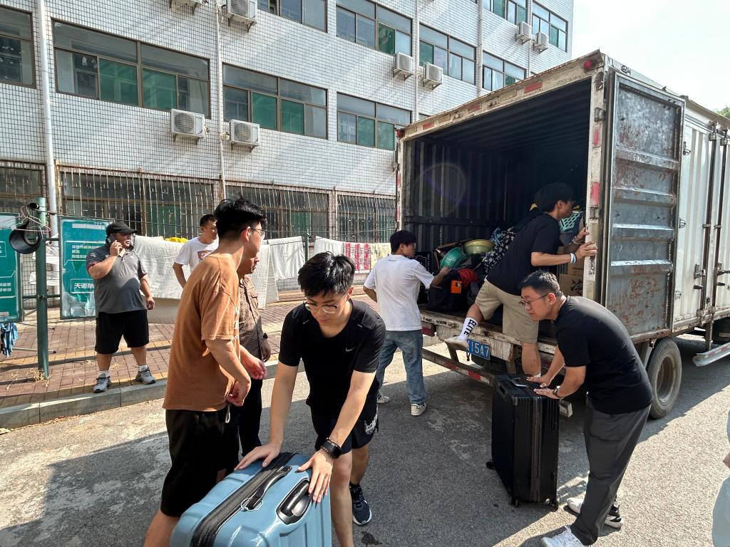 舜耕校区老师顺利接应,继续跟进搬迁的后续工作,积极协助学生们搬运行李,保障学生及行李物资顺利到达新宿舍。