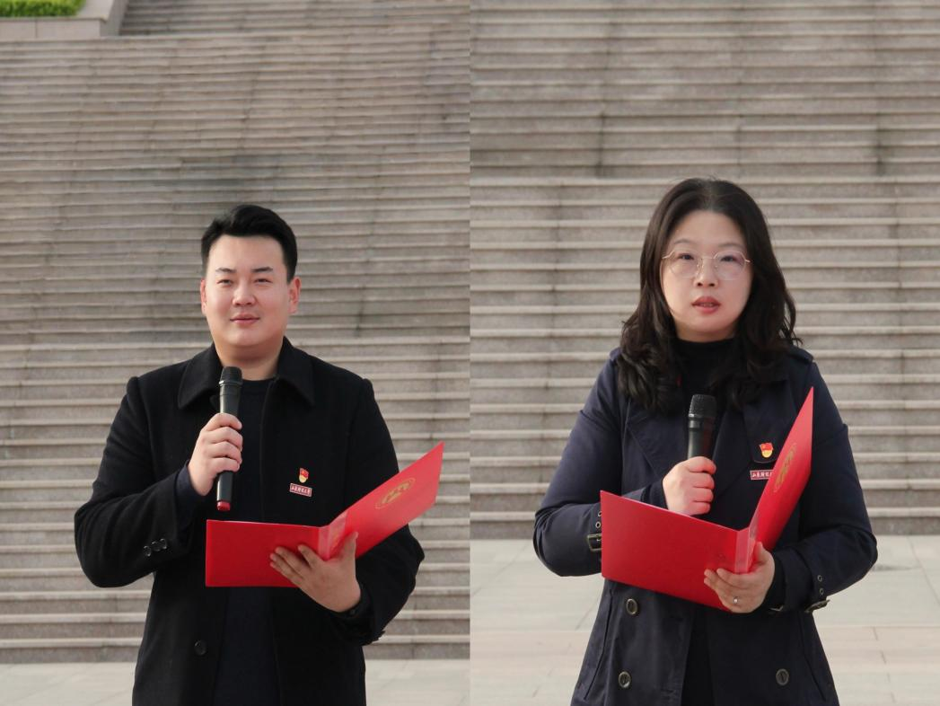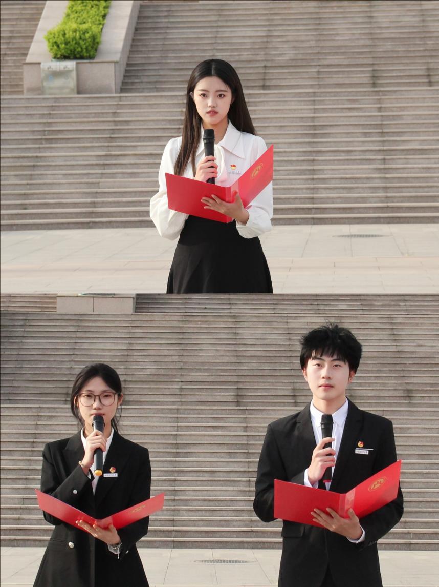 4月7日,工商管理学院举行“初心如磐践使命,青春向党启新程”主题教育升旗仪式,学院党委副书记郑大伟、团委书记范进进、辅导员王涵及学生党员代表、入党积极分子参加升旗仪式。仪式由王涵主持。