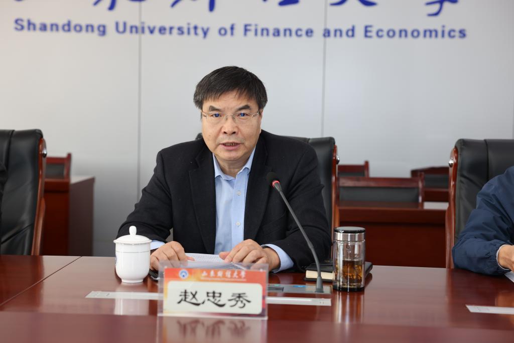 赵忠秀在交流发言时表示,习近平总书记明确提出了“三个走在前”的目标要求,这是总书记从战略和全局高度对山东发展的精准把脉定向,是党中央交给山东的重大政治任务,也是山东发展的重大历史机遇。我们要着力抓好抓实三项工作,一是瞄准国家战略需求,聚焦根本,全面提升人才培养质量,完善人才培养制度体系,全力推进新文科建设,促进学校高质量内涵式发展;二是聚焦山东省“十四五”规划和2035年远景目标,高质量做好“十四五”规划编制,充分发挥财经类高校人才和专业优势,推动山东在国内国际双循环战略中做出积极贡献。要积极推进产教融合、科教融合、理实融合,通过与地方政府、科研院所、企业共建共育产业学院,提升成果转化力度,提高服务区域经济社会发展的贡献度;三是围绕“双一流”和“双高”建设目标,打造国际化师资队伍,开展深层次国际交流,将国际化办学理念和文化深刻融入到学校文化建设中,形成具有财大特色的国际化办学文化。