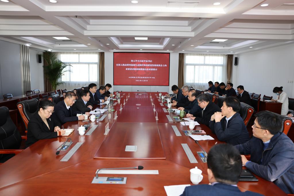 王邵军说,近些天我通过深入学习习近平总书记的重要讲话和重要指示,越发感到其中蕴含的意义重大而深远。这是习近平总书记在发表“七一”重要讲话之后,在党的十九届六中全会召开之前,对黄河流域生态保护和高质量发展做出的新的重大决策部署,既是对黄河流域各省份提出的新要求,也是对山东作为黄河入海口所在省份进一步高质量发展的新期待。山东要做到“三个走在前”,这是总书记着眼全国大局、顺应形势发展、立足山东实际作出的重要指示要求。这对我们高校持续推进高质量发展同样具有极其重要的指导意义。