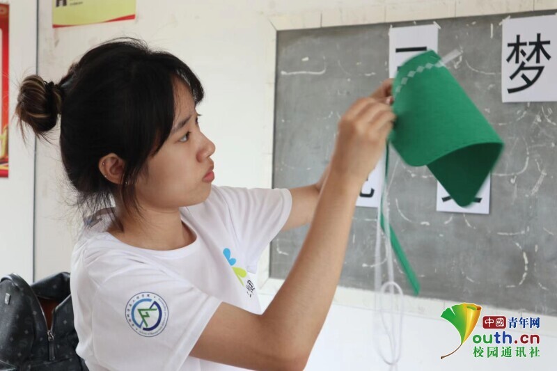 图为三梦队员在教孩子们制作红军包。中国青年网通讯员 司洁 供图