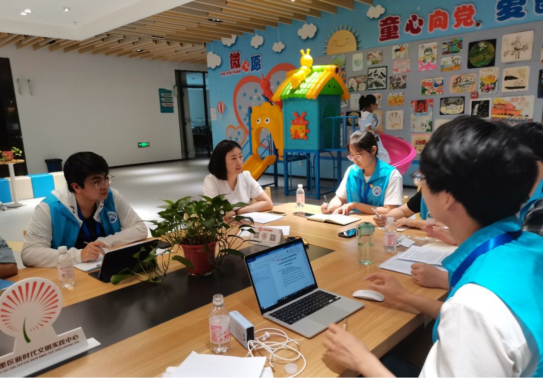 7月26日,青岛分队到达青岛市即墨区妇女儿童活动中心与即墨团区委刘部长以及青志协的志愿者们展开访谈,了解家庭环境与家庭教育对困境儿童发展造成的影响,同时重点研究物质帮扶下精神帮扶的重要性。刘部长指出,原生家庭氛围很大程度上能够影响孩子的心理状态,二者具有很强的关联性。其次,困境儿童家长学历普遍不高、眼界较为狭隘,对生活圈之外的事物难以向孩子传递,这也限制了孩子的视野。这两种问题都表明了精神帮扶的重要性,对此即墨团区委着重困境儿童的精神帮扶,通过团区委购买、社区分配的方式组织“放学来吧”公益课堂,让广大青年儿童感受到世界的温暖与美好,引导困境儿童树立正确目标,产生摆脱困境的内生动力。