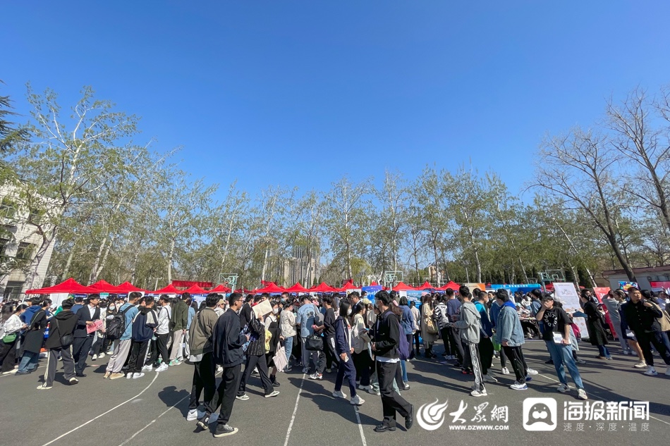山东财经大学2023届毕业生春季校园双选会于早上九点准时开始,还不到九点半,380多家企业单位的摊位前已经围满了学生。