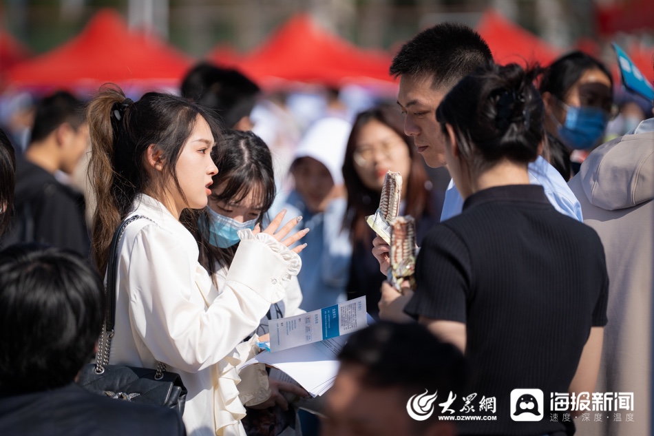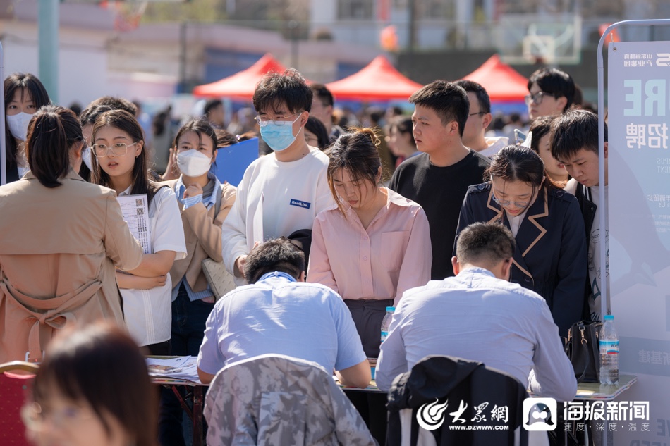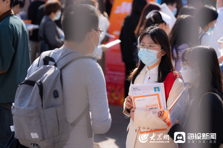 据了解,此次春季双选会共有380余家用人单位线下参会,双选会现场为毕业生提供了13600余个岗位机会。(大众网·海报新闻记者 毕胜 摄)