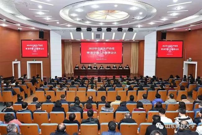 2月11日上午,山东财经大学在燕山校区图书馆第一报告厅召开2023年全面从严治党暨新学期工作部署会议,校党委书记王邵军讲话,校纪委书记、山东省监察委员会驻山东财经大学监察专员王福岱部署纪检监察工作,校党委副书记张培国主持会议。校领导陈晓兰、张书学、张新、陶虎、张红霞、谢申祥出席会议。全体中层干部参加会议。