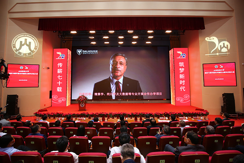 庆祝大会上,山东财经大学原校长、现任西南财经大学校长、党委副书记卓志、达尔豪斯大学校长迪普•赛尼等国(境)内外高校代表发来祝贺视频,回顾了与山东财大的交流合作,祝愿山财大继往开来矢志不渝,未来更加美好。