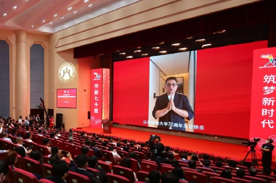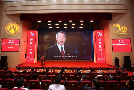 审计署党组成员、中央经济责任审计工作部际联席会议办公室主任、山东财经大学原党委书记郝书辰,中国光大集团股份公司党委书记、董事长、1980级校友王江,上海财经大学校长助理、长江学者、1993级校友李增泉,洪泰基金创始合伙人、董事长、1985级校友盛希泰等通过视频,表达了对母校70华诞的美好祝福。他们的祝福视频在会场播放,赢得了阵阵掌声。