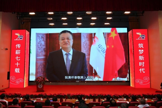 校长赵忠秀在致辞中向全体师生员工和海内外校友致以节日问候和美好祝福,向关心支持学校建设发展的各位领导和各界朋友致以衷心感谢。
