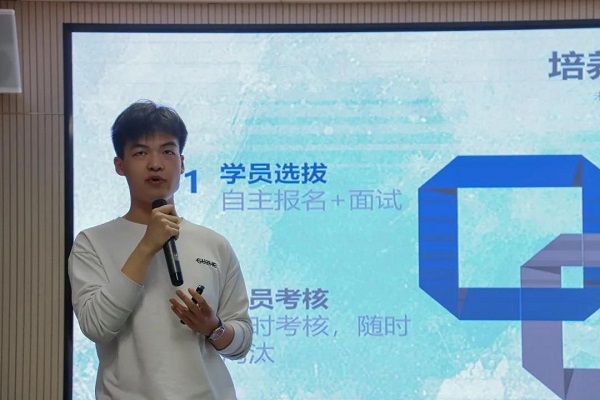 “未来合伙人”创新实验班第一期学员马千越对“未来合伙人”创新实验班双向选择的导师制和人才培养模式进行了分享。他表示,自己在“未来合伙人”创新实验班中收获颇多,导师的一句“勇于突破自己的认知半径”更是对自己受益匪浅,激励他不断跳出舒适圈,勇于尝试未知领域。马千越说:“在班级中学到的敢为人先、勇于实践的创新意识和奋斗精神是激励我不断向前的动力。”