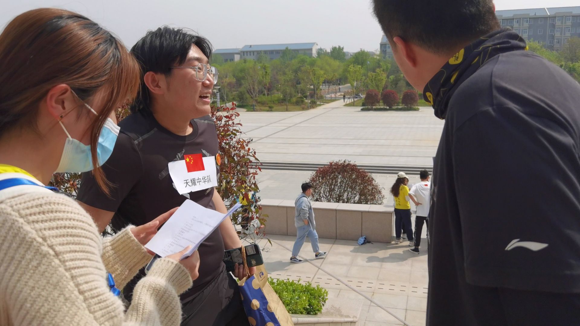 胜利会师的地点定位在校园东广场的校徽雕像前,到达这里后,每支队伍随机抽取了拍照姿势卡片,根据卡片上要求的拍照姿势摆出造型,有的站成从低到高的阶梯状,有的头头相靠聚成一团,有的手拉手摆出五星形状……妙趣横生的拍照过程,为一路的追逐奔跑增添了欢声笑语,为所有队员留住了宝贵的青春时刻。