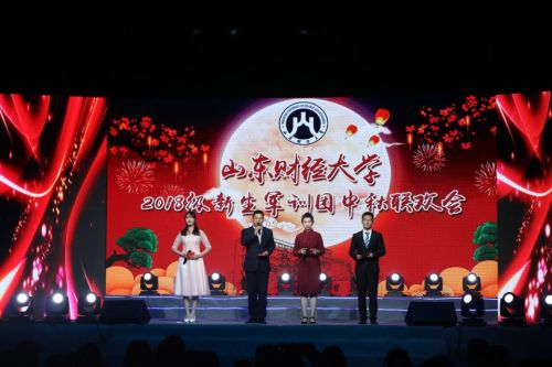 9月24日晚,山东财经大学2018级新生军训团中秋联欢会在圣井、明水、莱芜校区盛大开场。辅导员代表、2017级学生代表及2018级新生代表主持晚会。副校长韩作生、张新出席晚会。