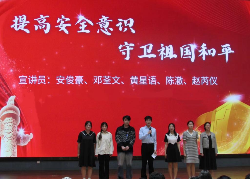 大学生宣讲员安俊豪、陈澈、黄星语、邓荃文,围绕总体国家安全观,以通俗易懂的语言和以案宣法的方式,对国家安全进行全面解析,以创新形式生动讲好国家安全故事,用青年视角阐释党的理论,用青年话语宣传党的思想,用青年担当践行党的号召。