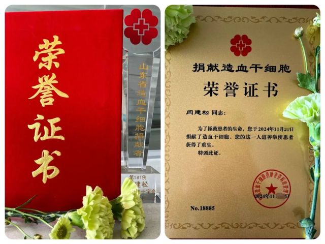 近日,山东财经大学学生闫建松在山东某医院顺利完成造血干细胞捐献,用大爱和义举为患者点燃生命之光,成为中华骨髓库第18885例、山东省1578例、济南市第181例、历下区第31例造血干细胞捐献者。同时,他也继济南市第34例造血干细胞捐献者王忠义后,成为山东财经大学第二例造血干细胞捐献者。