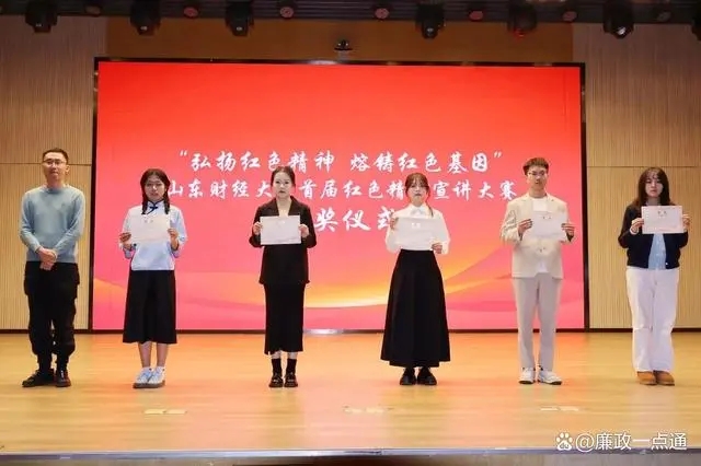 12月5日晚,“弘扬红色精神 熔铸红色基因”——山东财经大学首届红色精神宣讲大赛在圣井校区大学生文化活动中心举行。比赛中,六支参赛队伍围绕沂蒙精神、遵义会议精神、井冈山精神和科学家精神等开展主题宣讲,带领观众回顾那些波澜壮阔的历史。《追寻遵义精神,赓续红色血脉》以独特的形式展现了遵义会议前后的历史,引发了观众对新时代青年责任与担当的思考;《弘扬科学家精神,赓续先辈意志》讲述了王承书等科学家无私奉献的故事,激励青年学子奋斗实干、奉献国家;《红色沂蒙情,时代最强音》结合当代大学生传承红色基因的实践,展现了新时代青年对红色精神的传承与创新;《革命摇篮——井冈山的故事》歌颂了井冈山精神中蕴含的坚定信念和勇于胜利的伟大力量,使观众仿佛置身于那段激情燃烧的岁月;《沂蒙烽火燃壮志,时代华章续辉煌》讲述了沂蒙六姐妹等英雄群体的事迹,生动展现了沂蒙精神中爱党爱军、无私奉献的深刻内涵;《遵行道义,生生不息》生动讲述了红军长征中的英勇事迹,让听众深刻理解了坚定信念、实事求是、独立自主、民主团结的基本内涵。宣讲内容深入浅出,形式丰富多样,生动展现了红色精神的内涵与时代价值。