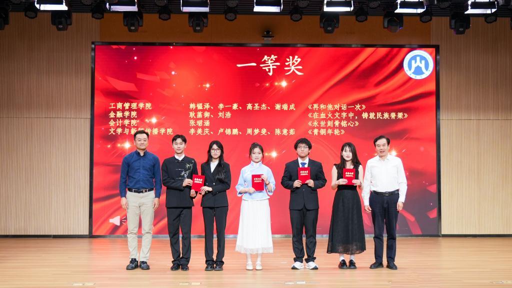 经过激烈角逐,来自金融学院的耿菡御、刘浩同学的《在血火文字中,铸就民族脊梁》等4份作品荣获一等奖,统计与数学学院靳逸鹤同学的《高高举起血红的旗帜》等8份作品荣获二等奖。