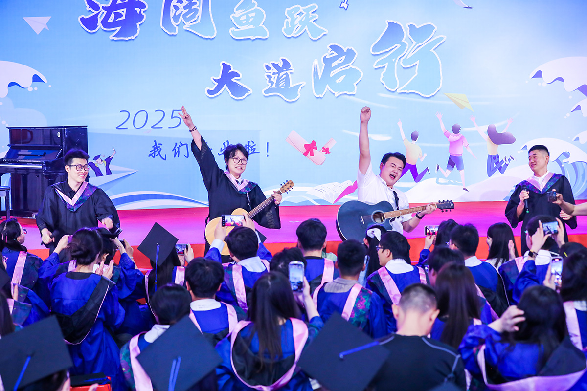 典礼结束后,现场音乐响起,青春声浪点燃。《我的祖国》《错位时空》《平凡之路》《亲爱的你啊》《不要慌 太阳下山有月光》《光阴的故事》《毕业歌》等歌舞表演,将现场气氛一次次推向高潮,赢得了阵阵掌声与欢呼。